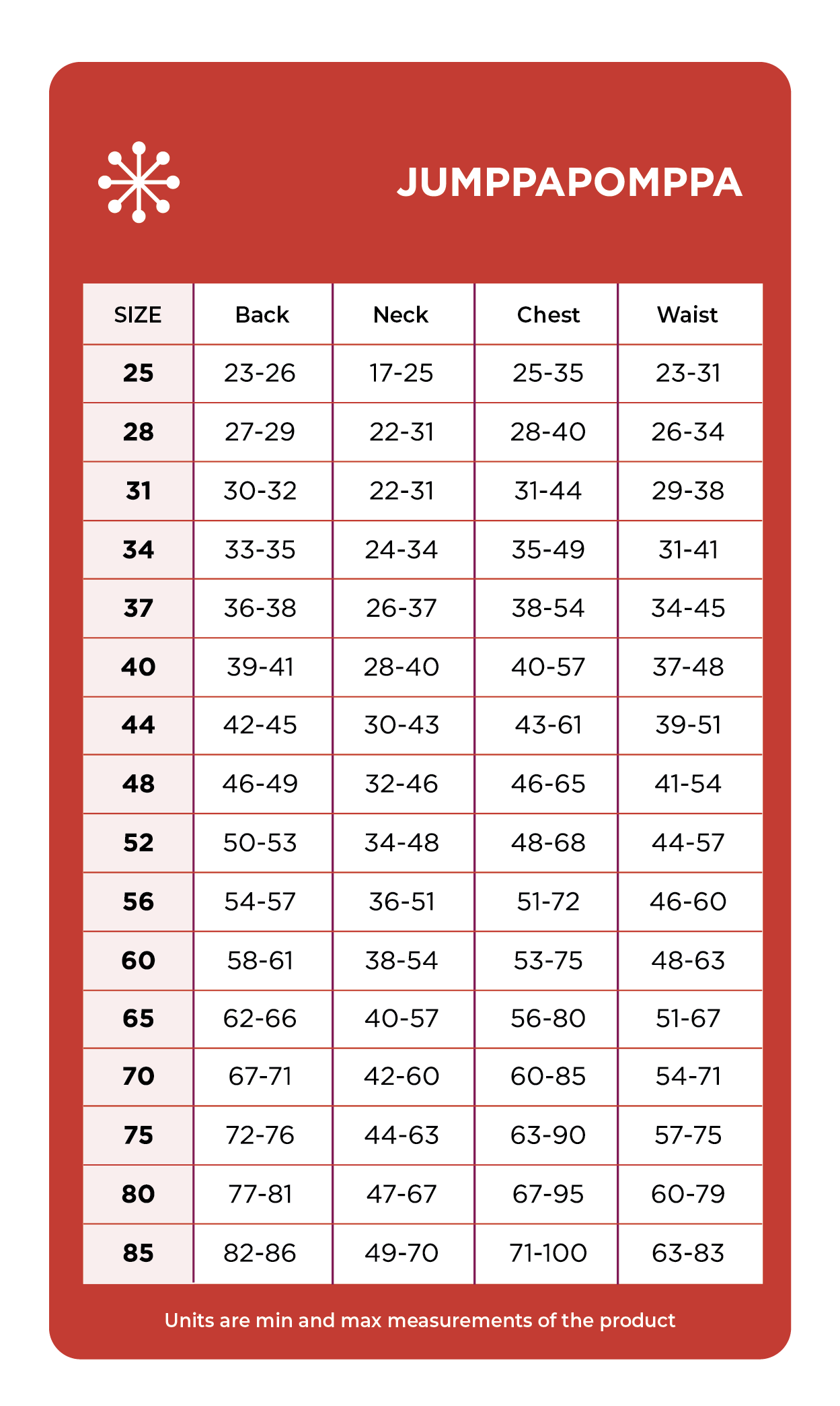 Storlekstabell